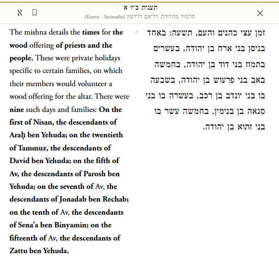 The Mishnah continues with a list of the times for the wood offering of priests and the people.