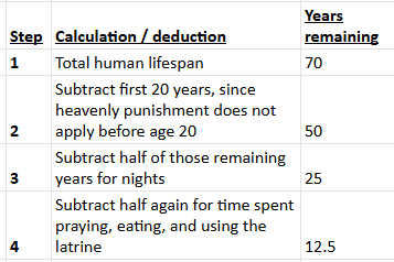 I.e., the previous 50 years, divided by two, as nights are half the day.