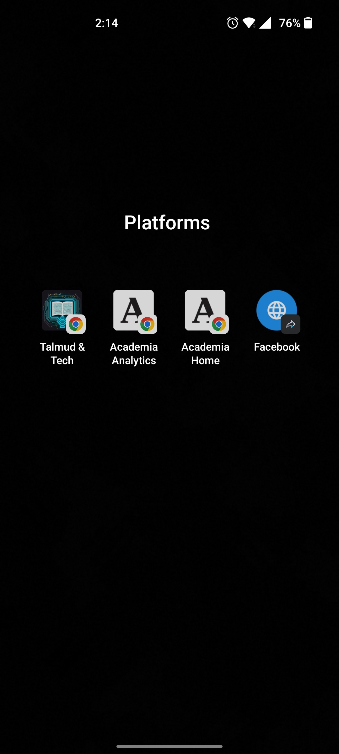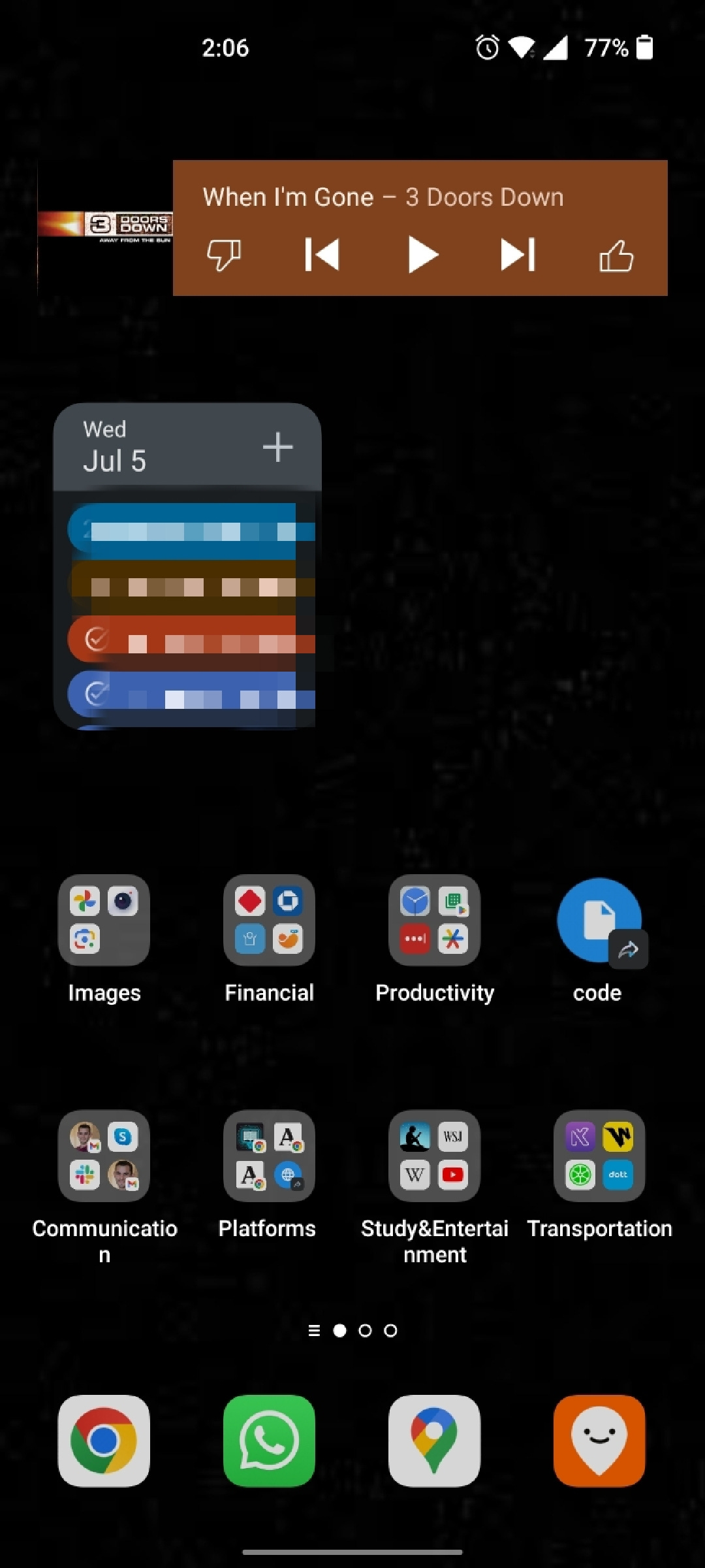 The device I use is a first generation OnePlus Nord (it’s a mid-range phone, bought it 3 years ago for $450). I keep my frequently used applications sorted into personalized folders. I ensure a clutter-free interface by either uninstalling or disabling all other applications, unless they are necessary for a specific function. I've set my phone's default screen appearance to Dark Mode.