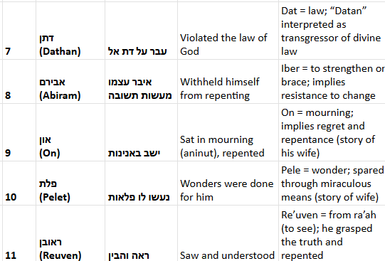 Names of Dathan, Abiram, On, Peleth interpreted as moral commentary - Numbers 16:1