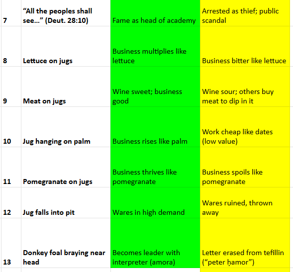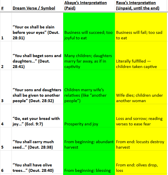 Appendix - Table summarizing the 22 Dream Verse / Symbols, with corresponding Abaye’s Interpretation (Paid) and/or Rava’s Interpretation (Unpaid, until the end)