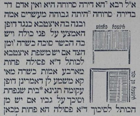 The sugya also includes debates between Abaye and Rava about marginal cases, including a minimalist sukkah barely 10 handbreadths high and an elevated platform or pillar with minimal dimensions. These cases expose competing views on what counts as a ‘dwelling’2 and what makes partitions halakhically nikkarot (visibly distinct).