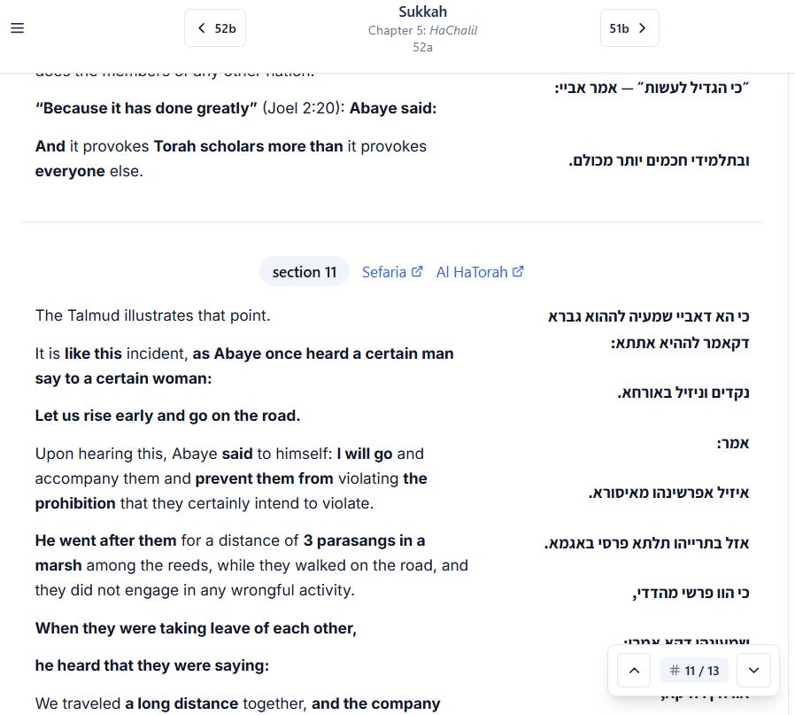 Here’s that same section at ChavrutAI, currently (https://chavrutai.com/talmud/sukkah/52a#section-11):