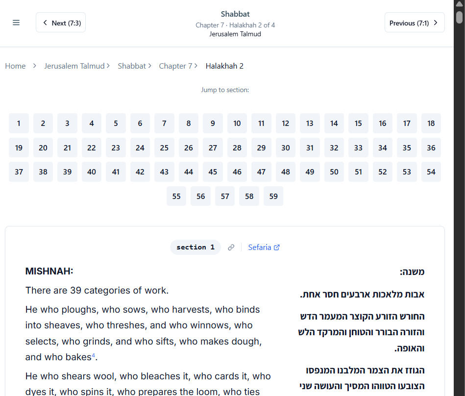 Screenshot at ChavrutAI (https://chavrutai.com/yerushalmi/Shabbat/7.2, in tablet view):